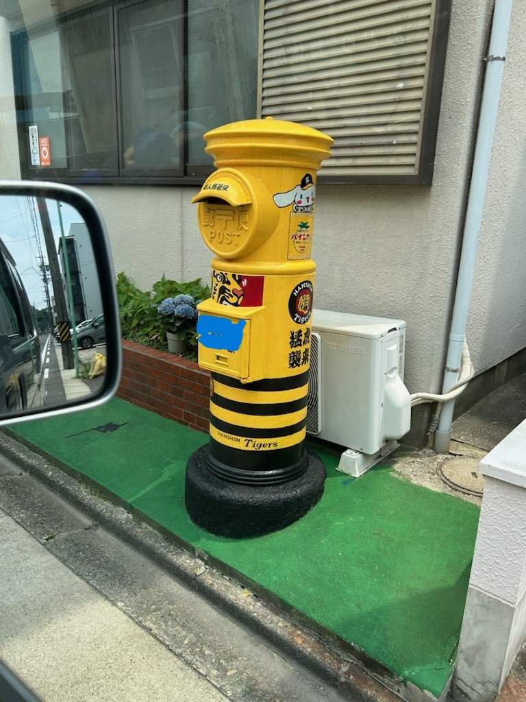 【こんなんあり?】 今日、市内某所を走行していたら、こんな郵便ポストを見つけました。「すんげぇ、熱狂的な阪神ファンがいるんだぁ」と呆れて思わず苦笑い。写真を撮りました。でもふと考えました。「ポストを勝手にこんな色に変えていいのかぁ?」と。でもよ~く見ると、上の方には「個人郵便受」と記してあります。読んで字の如く個人宅の郵便受です。投函用のポストとしての機能は持っていません。紛らわしいなぁ(苦笑)。※個人情報保護のため、住所と名前のところは青く塗りつぶしています。