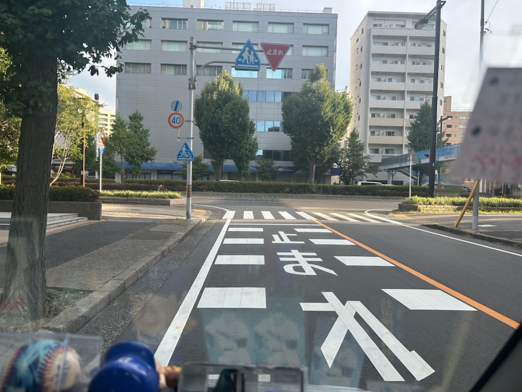 こんなデカデカと「止まれ」と書いてあるのに見落とした自分が悪いのですが、そもそもこの見通しの良い横断歩道の手前に停止線を付ける意味があるんですかね?むしろ横断歩道の先の大通り(桜通)に合流するところに停止線を付ける方が、よほど事故を防ぐのには現実的なのではないでしょうか?もちろん大通りとの合流点では止まりましたよ。そこで止まった時に左側から婦警さんが現われて「手前の停止線で一旦停止しなかったので、違反です」と言われました。これはまるでテストの引っ掛け問題みたいですよね。釈然としない気持ちでしたが、ここで揉めても時間が勿体ないので、従いました。罰金は¥7,000です。痛~い一日になってしまいました。