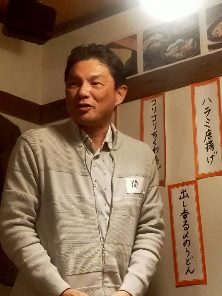そしてその工藤君の乾杯の発声で宴会開始です。全員で23人が参加した宴は最初から熱気でムンムンしていました。それはそうですよね。人によっては30年ぶりくらいに会った人もいて、あちこちで昔の話、今の話、明日の試合の話で大いに盛り上がっていました。そして開始から1時間経ったところで、今回、東海地区以外から参加していただいた工藤夫妻<九州から>を初めとする8人に近況やポッカ時代の思い出などを語っていただきました。